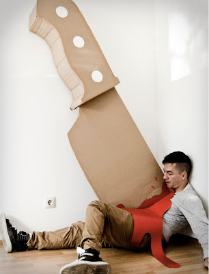 ZPredstavte that you climb into his apartment, and right on the stairs lies a man who stuck to a giant knife. But do not frown, it is not about this knife, and his huge cardboard copies. Using such a fun knife Marie Lujan and Wolfgang Krug - a company of the two artists was playing passers-by on the streets of Berlin.